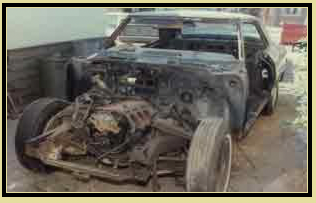 So the first thing you need a good Riviera candidate. I found this car while looking for old Buick parts with my long time friend Craig New in Boulevard CA, 65 Miles east of San Diego. The car was sitting downhill flat on the frame. It had no tires or wheels. This '65 had a motor and transmission in it, not the right one, but a motor. It was was a '63 motor and trans. This was not the oddest part, the block had a hole in it!! Any way, I purchasing the car for $100.00 (1985). A few weeks later, Craig, Leonard Scott and myself returned to Boulevard to retrieve this prize.